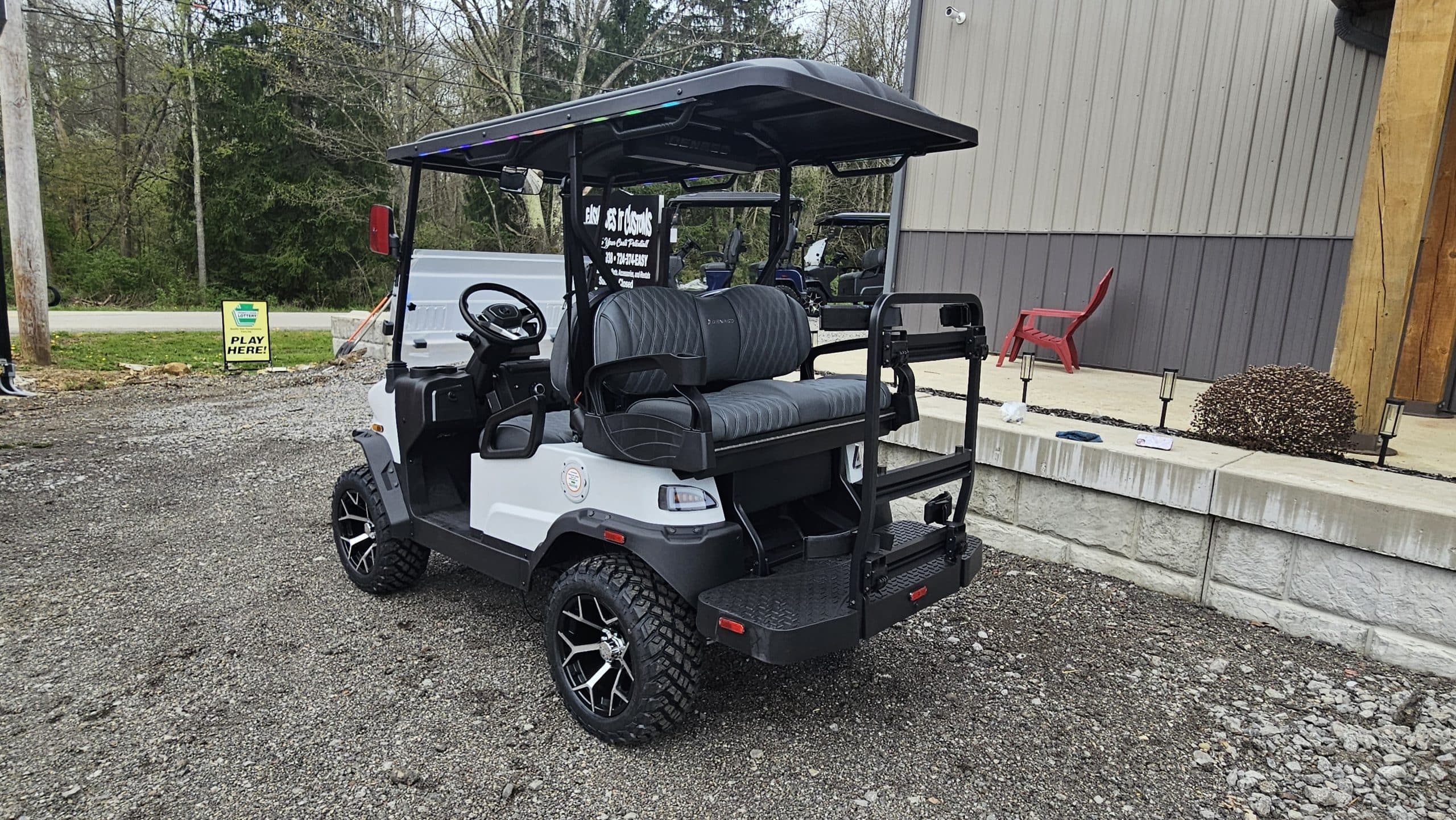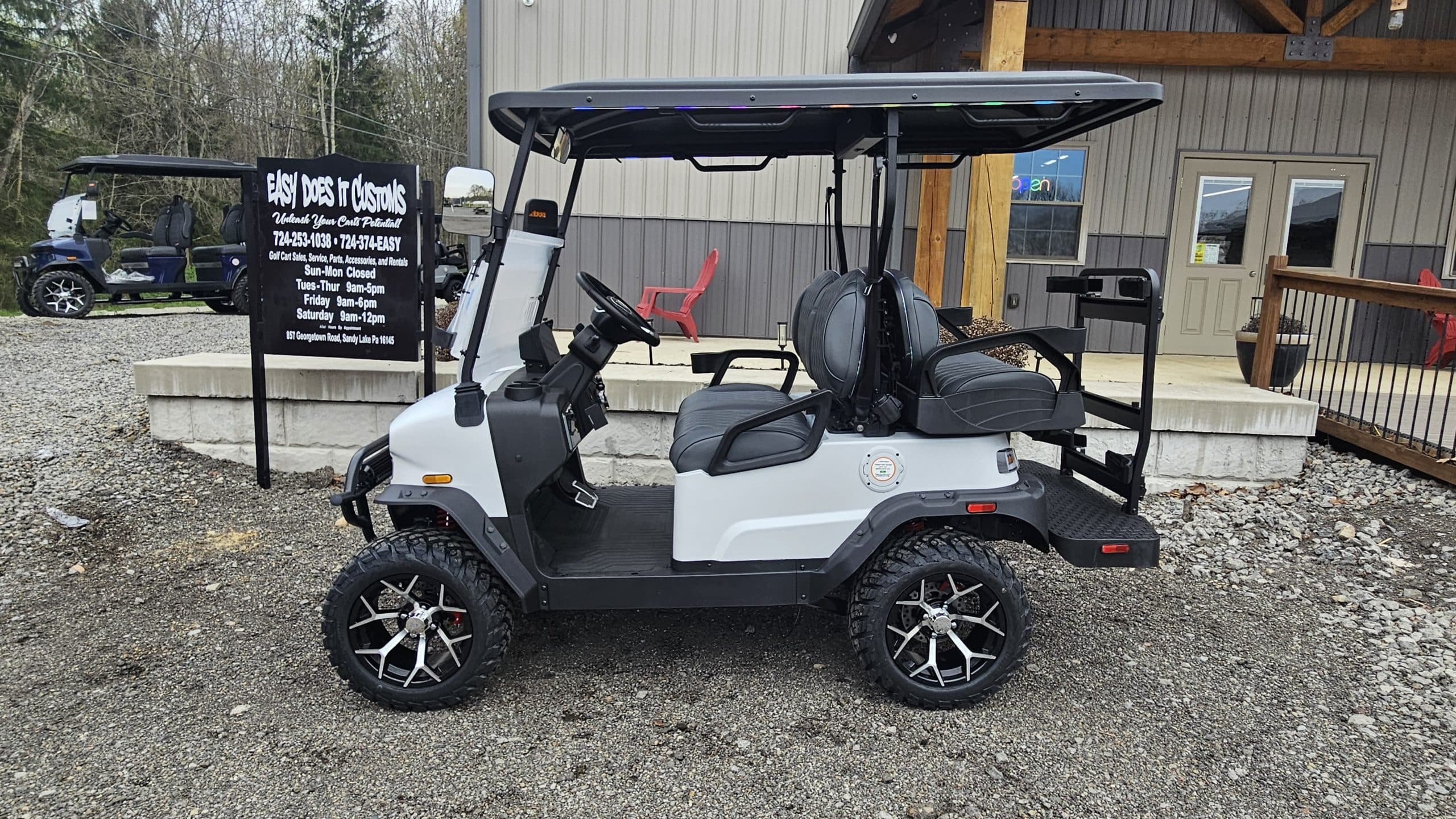 • LED color changing lights in the roof, seats, and under the cart