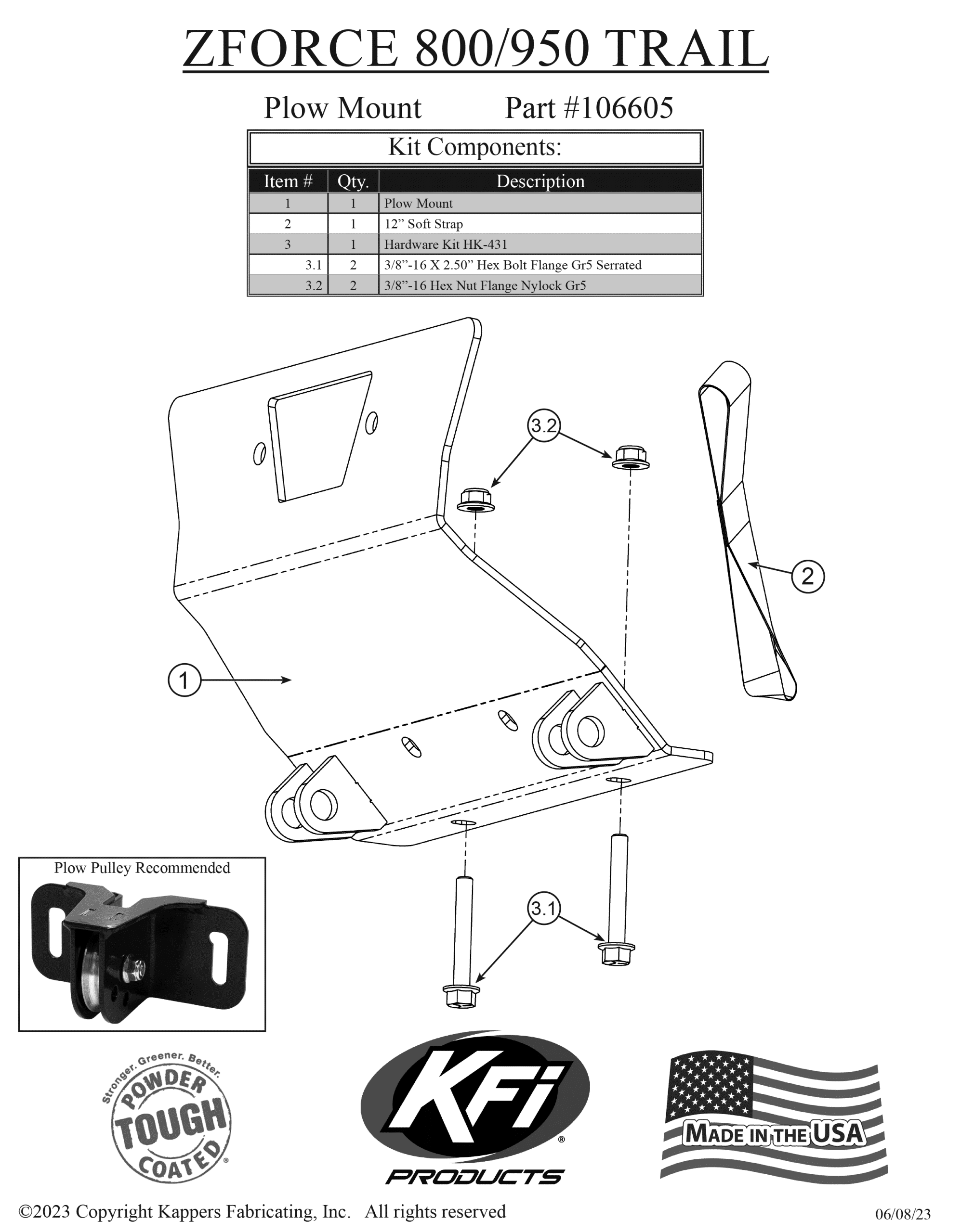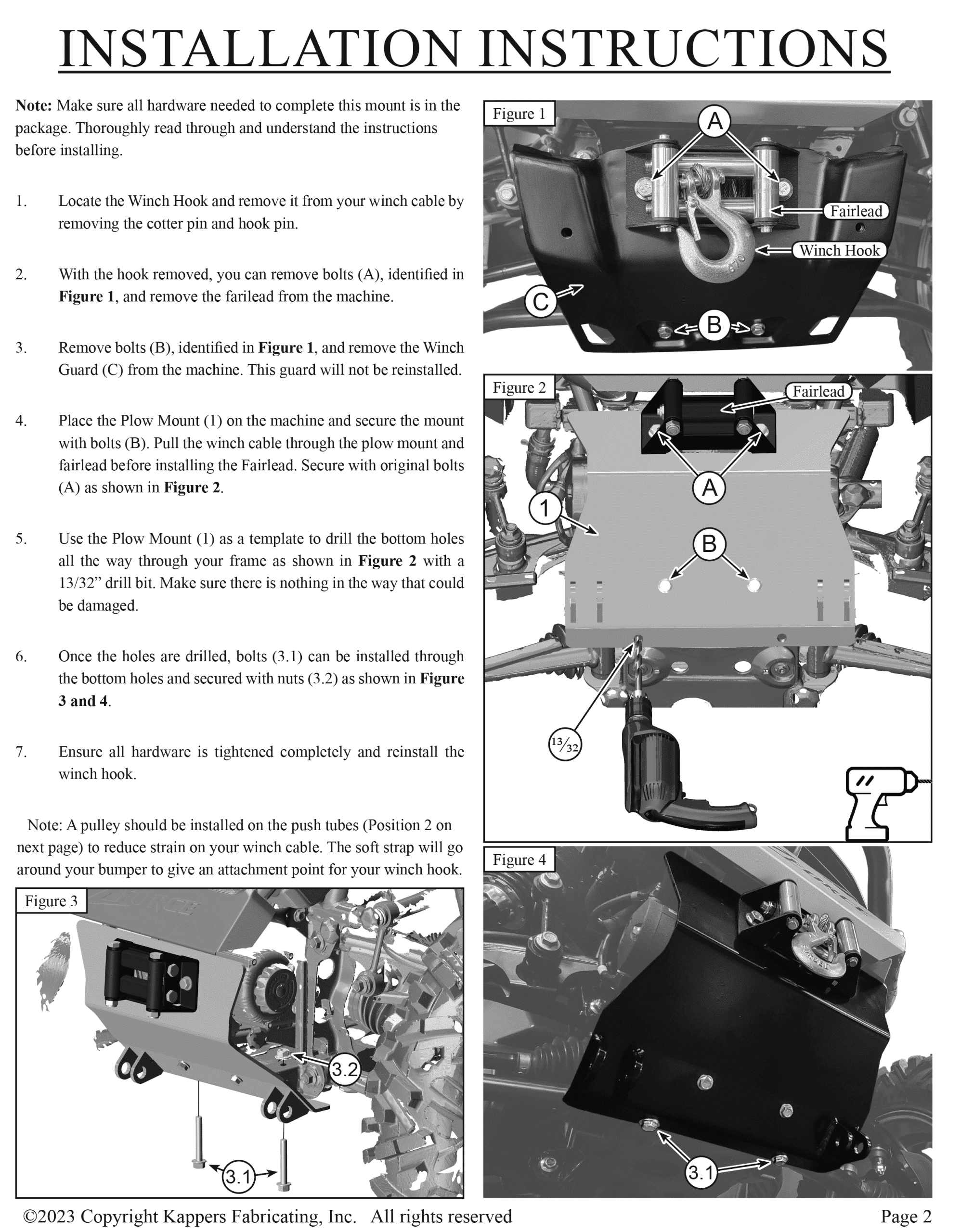 – Recommend also purchasing the #105270 Plow Pulley if using STEEL cabled winches or #106270 Plow Pulley is using SYNTHETIC cabled winches.