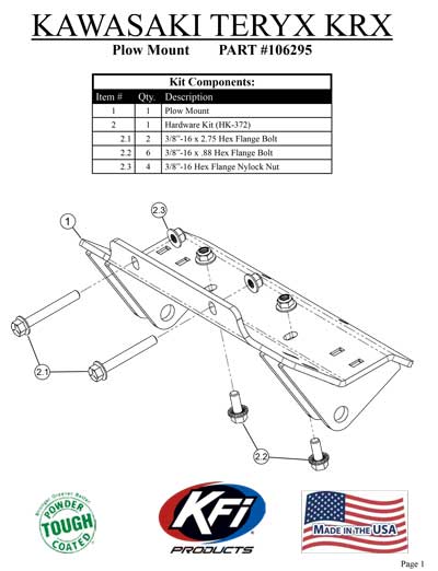 Each KFI Part is made from high-grade American Steel for an absolute rock-solid mounting option you can count on no matter how thick and heavy the snow is.