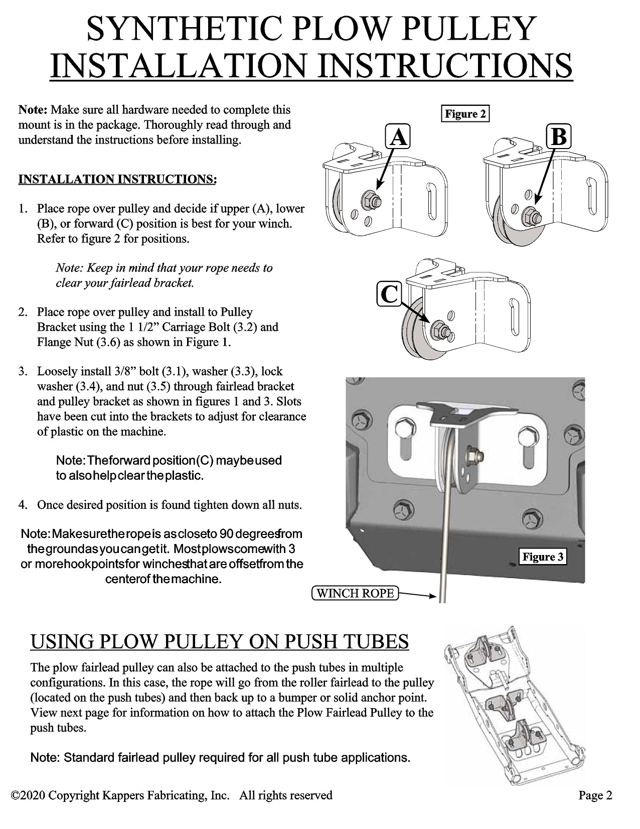 • Replaces standard winch fairlead during plow season.