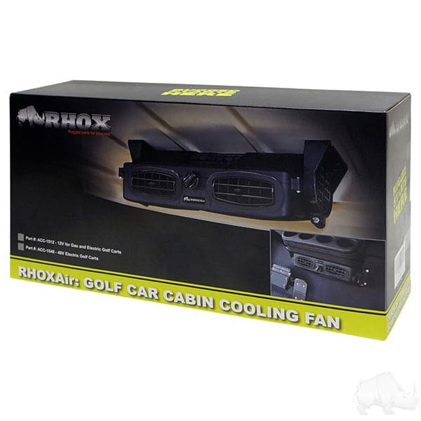 RHOXAir golf car cabin cooling fan delivers 300 cubic feet per minute of air flow.