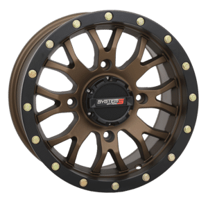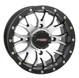 A simulated beadlock that utilizes an extra, heavy-duty inner and outer wheel lip and cadmium-plated bolts. Large lug holes accommodate most hex head lug nuts.