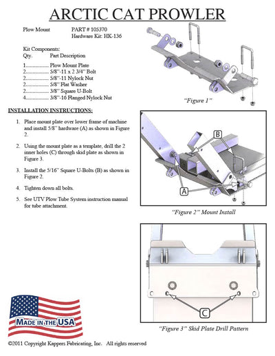 2009 2010 2011 2012 2013 2014 Arctic-Cat 550 Prowler KFI Plow Mount 105370
