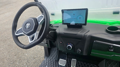 - Dash Screen with Speedometer, State of Charge, and Odometer plus Apple Car Play, Android Auto, Navigation
